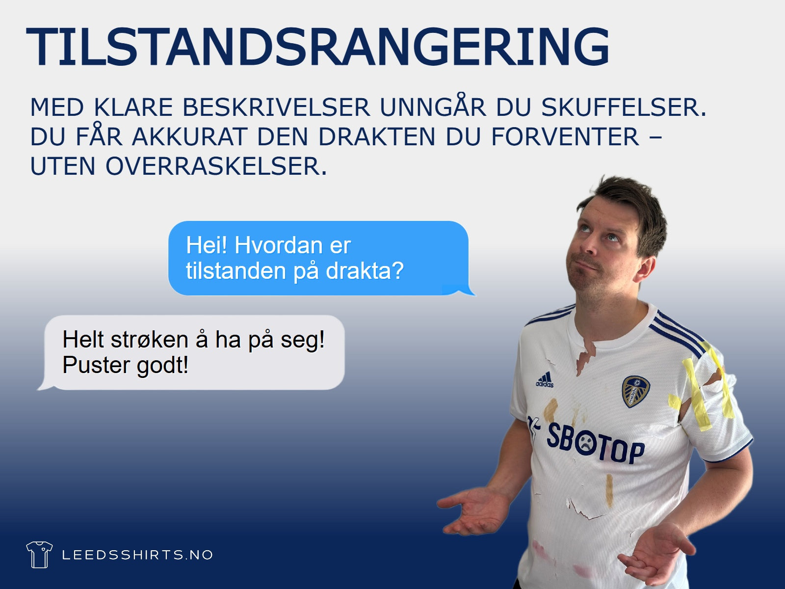 LES MER OM SERTIFISERINGEN HERFor at du som kunde kan være 100% trygg på at draktene du kjøper på Leedsshirts.no er ekte, har vi fått med KitLegit på laget, som en 3.parts sertifiseringsekspert. Alle drakter kjøpt hos oss har medfølgende sertifikat på at du har mottatt ekte vare.